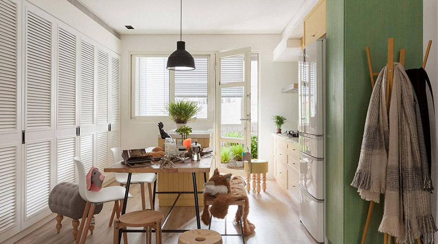 • 第二次換屋的屋主,對于鄉村風格有著情有獨鐘的偏好。因此,設計師黃鈴芳保留下鄉村舒適的同時,透過仿飾漆為立面及柜體刷色,在原味里混入了繽紛色調,鏤刻出了獨有的生活感。同時也悄悄增溫了時間與空間的記憶關系。 另外,原始格局中,客廳區塊有著惱人的西曬問題,不僅大幅降低了生活的舒適度,而且映入眼簾的僅有停車場的都市景象。綜觀房屋狀況后,馥閣設計巧妙地將客、餐廳空間對調,轉而讓客廳擁有了社區中庭景觀。而西曬陽臺則改為洗衣空間,讓衣服擁有陽光曬過暖烘烘的味道,將生活美學和空間功能做了完美的平衡。